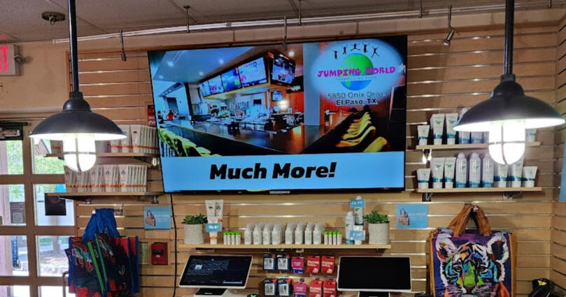 Your creative runs across multiple screens in high traffic areas throughout the venue, not just one location. That means repeated, natural exposure across entrances, walkways, food areas, and gift shops.
